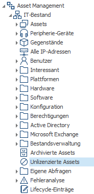 Fall das Problem damit noch nicht gelöst ist, navigieren Sie zur Abfrage "Unlizenzierte Assets" und löschen dort alle Ergebniszeilen: